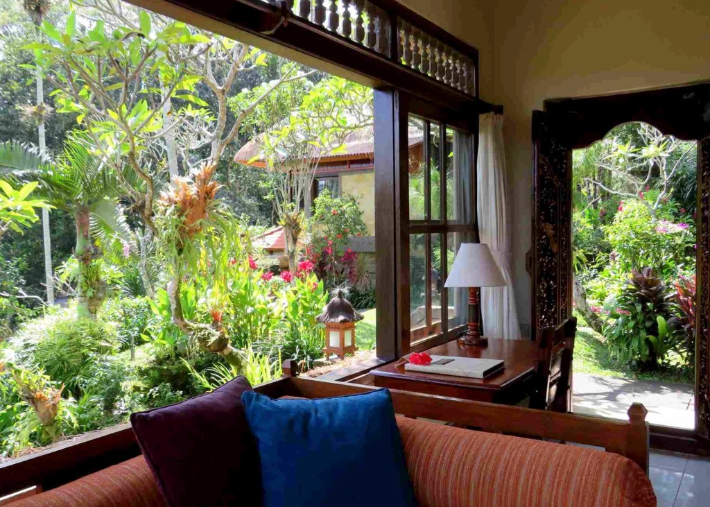 The venue is an established Balinese family run hotel with friendly staff who welcome us with open hearts. The whole boutique villa style property is situated within a jungle atmosphere and within easy walking distance into Ubud central. The unique balinese style rooms are nestled in wonderful gardens, some overlook the valley, others look out on to the gardens. There is also an open air dining room and swimming pool.